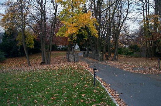 This photo shows the approach from the street. Originally, the bridge was constructed of wood.