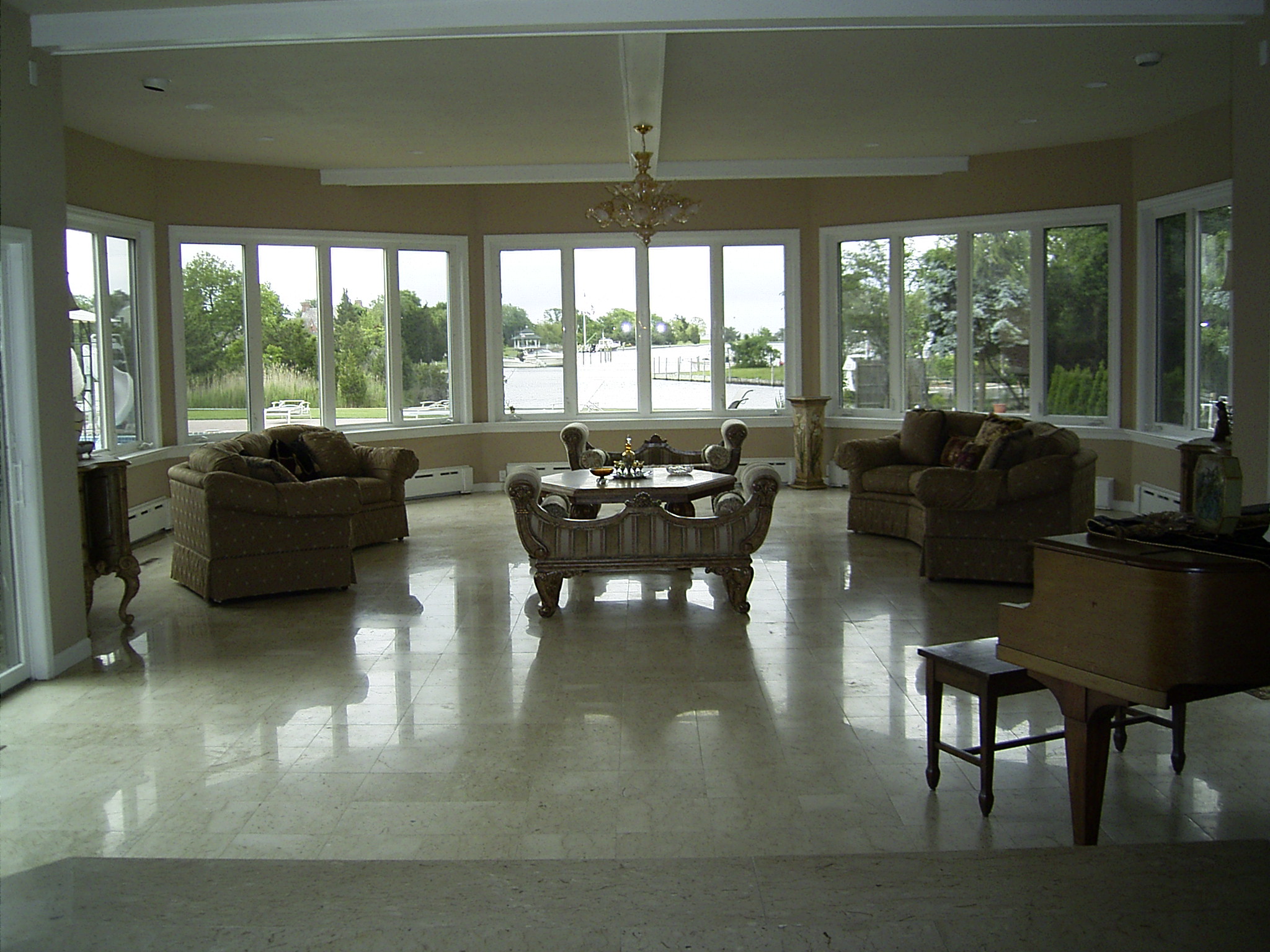 marble floors in the formal living room, ballroom and cocktail lounge. A large fish pond